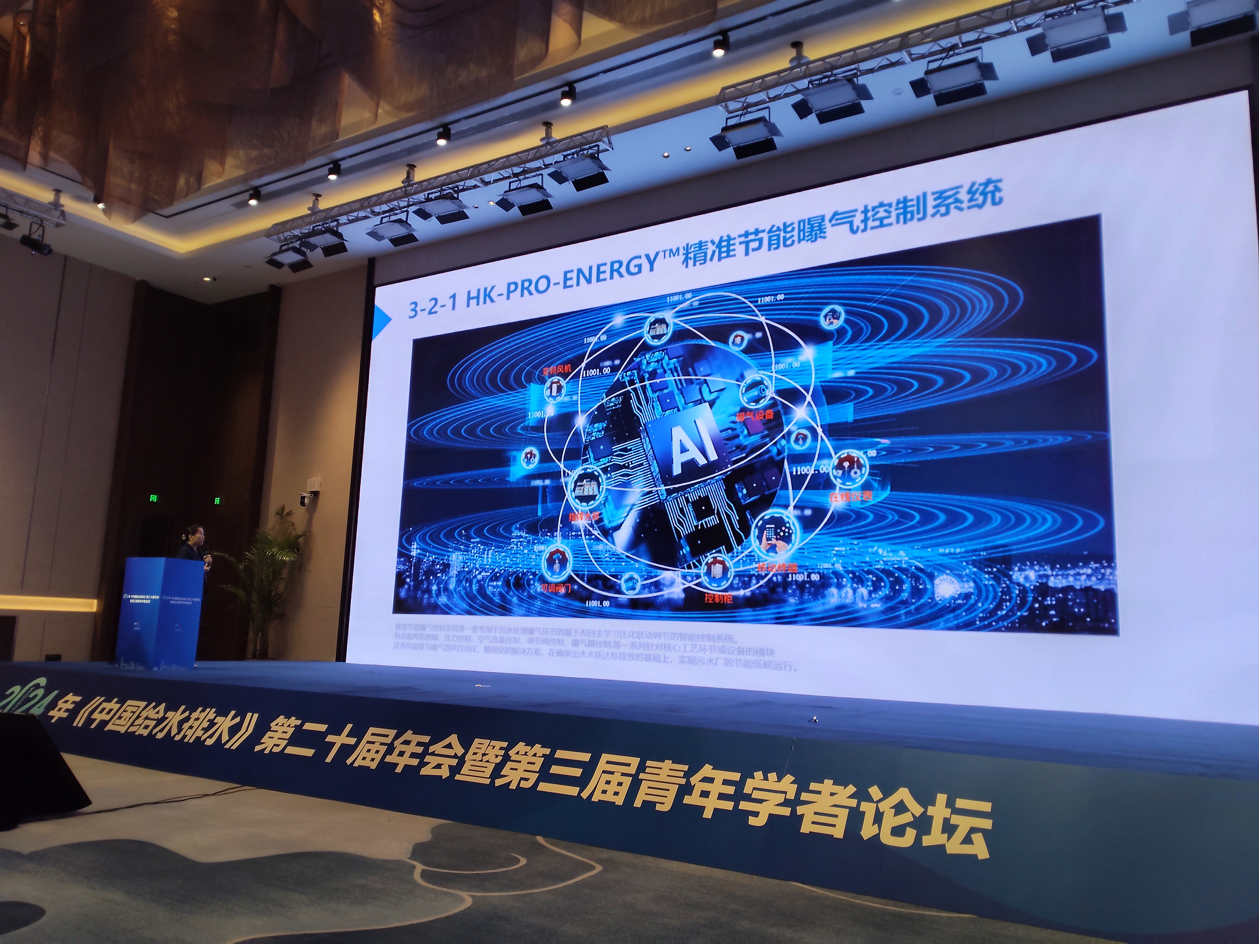 司曼女士就HK-PRO-ENERGY™精准节能曝气控制系统的硬件构成、工作原理、控制策略及各维度优势进行了讲解,并以山东某市政污水处理厂为例展示了使用效果。演讲引发了会场人员的广泛兴趣和热烈讨论,参会专家均表示,HK-PRO-ENERGY™精准节能曝气控制系统通过先进的软件算法及数据分析能力为水环境治理开拓了新的行业方向。